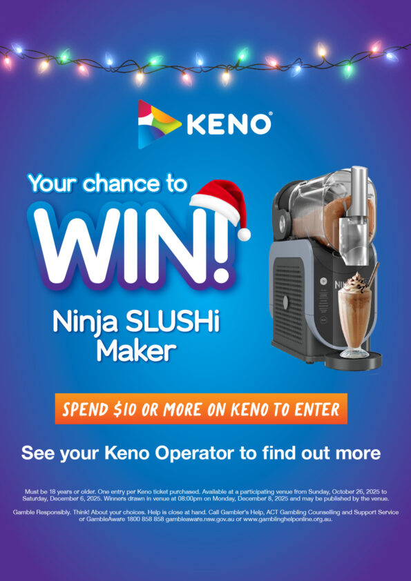 Your chance to win a Ninja Slushi Machine! Simply spend $10 on Keno for your entry.